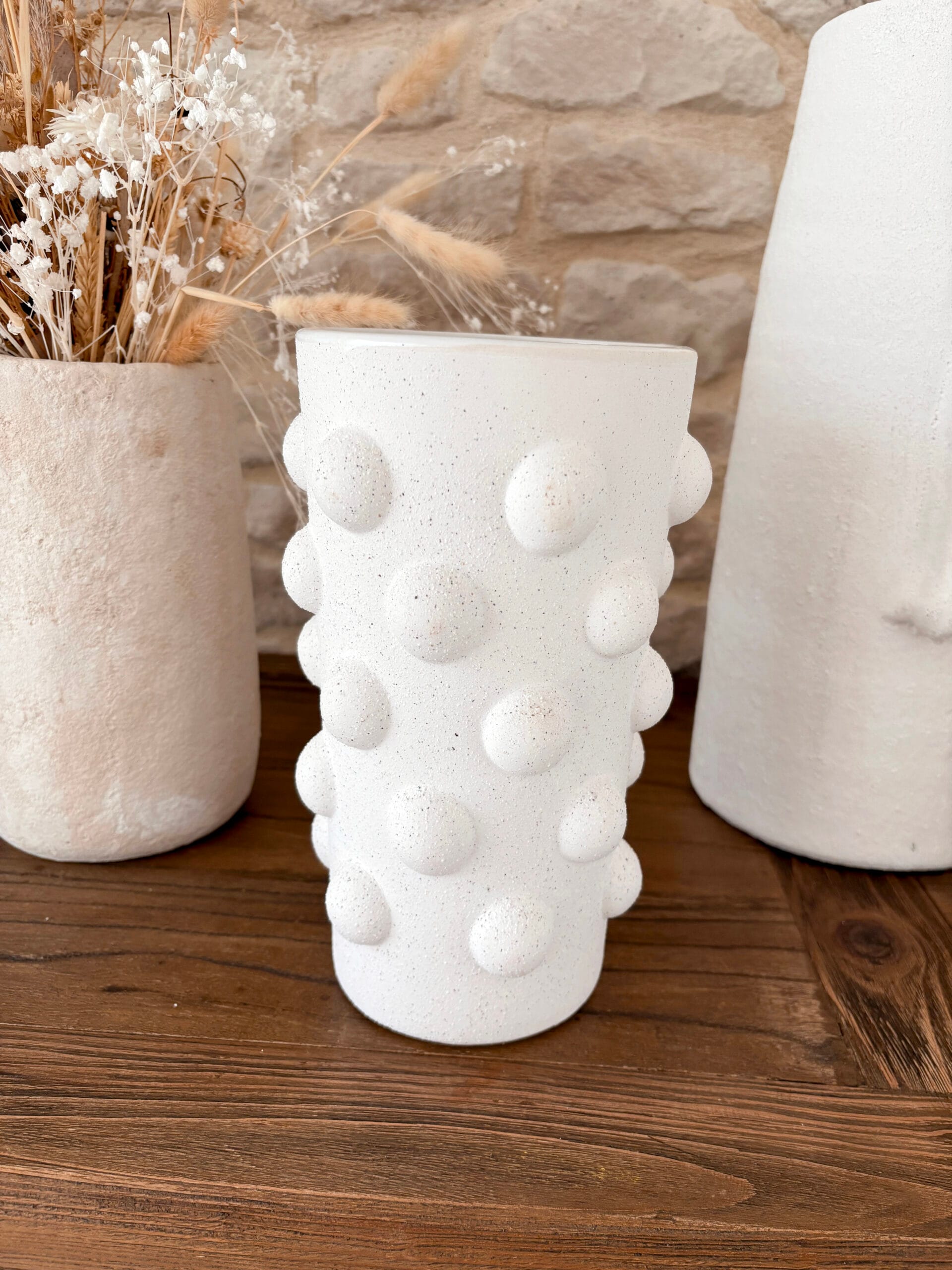 Le vase en Artan de Bloomingville est un vase magnifique et unique en grès blanc avec de beaux points 3D. Parfait dans toutes les pièces.